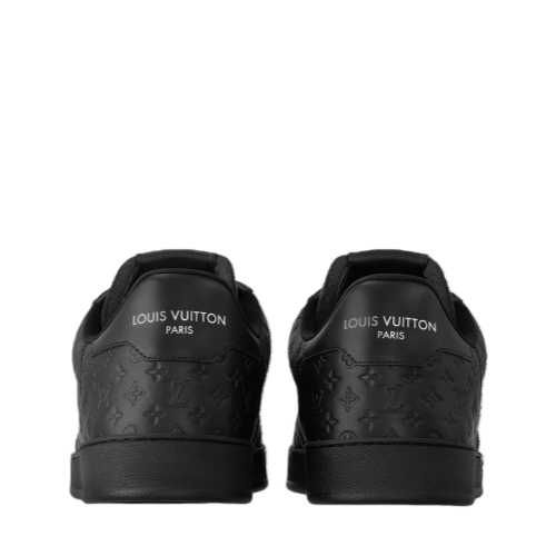 The emblematic Rivoli sneaker is reworked in a refined, monochrome version in soft calf leather embossed with the Mini Monogram pattern. A transparent rubber outsole complements this design, which also features a shape-memory anatomic insole for extra comfort. This model bears the LV Initials on the tongue and the Louis Vuitton signature at the back.