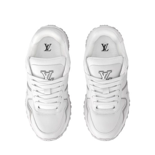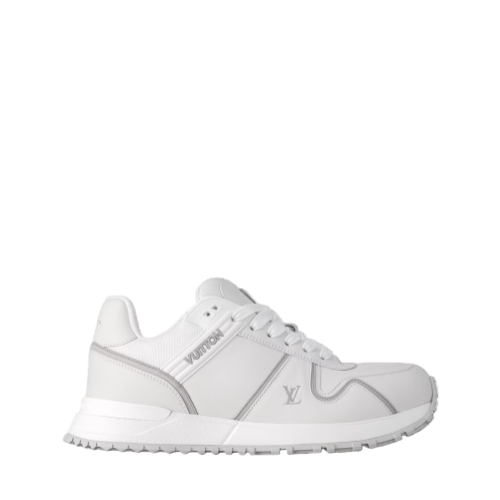 Debuting with the Prefall 2025 collection, the Run Away Maxi sneaker is a fashionably oversized version of the emblematic Run Away. It features an upper in smooth calf leather with contrasting LV Initials and Vuitton signatures. Another key detail is the wedge-shaped outsole, inspired by running shoes, which is made of lightweight rubber.