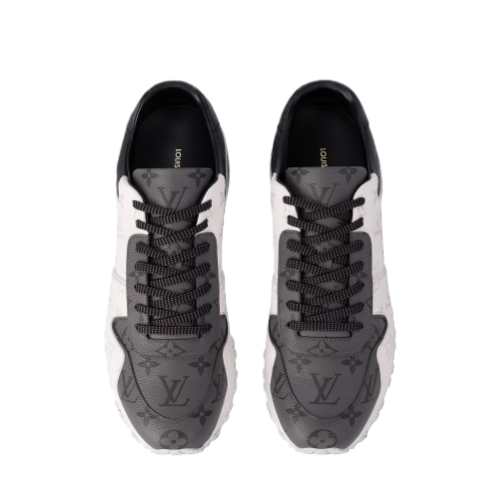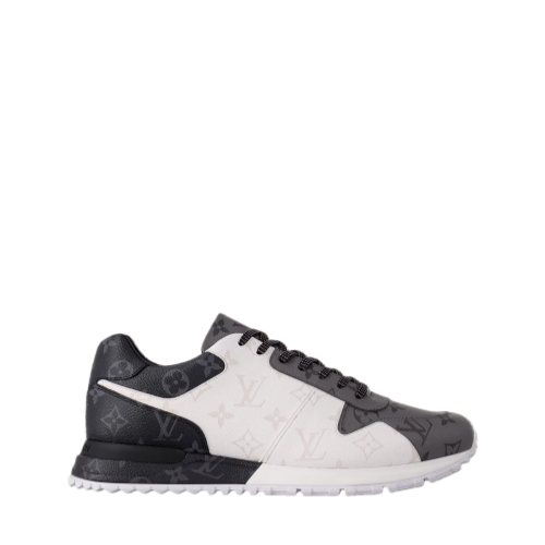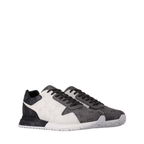This bicolor version of the Run Away sneaker combines three variations on Louis Vuitton's signature canvas: white Monogram Ice and dark gray Monogram Eclipse and Monogram Reverse. This emblematic model, which was inspired by classic running shoes, features a technical rubber outsole with hand-finished details.