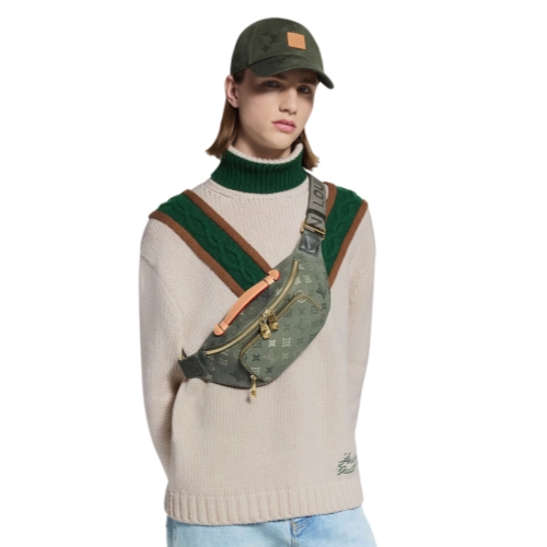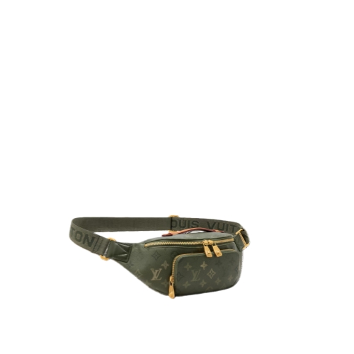 The Rush Bumbag exudes style in Monogram Surplus coated canvas with golden zippers featuring a subtle patina. A zipped front pocket offers quick access to essentials, while double zippers secure the main compartment. The adjustable textile strap allows it to be worn around the waist, over the shoulder, or cross-body.