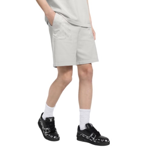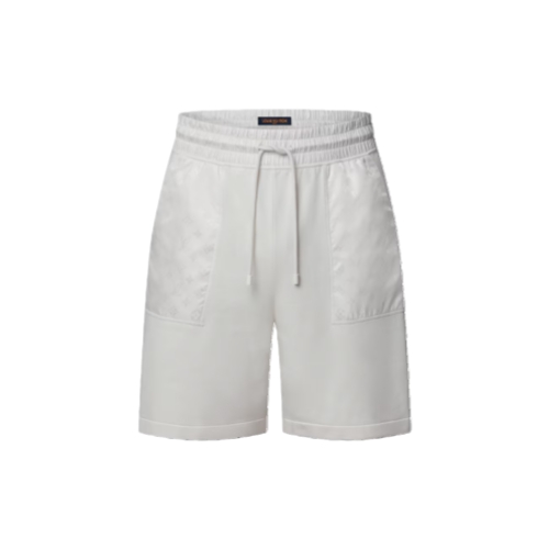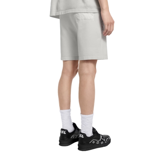 These drawstring shorts, crafted from soft, organic knitted cotton in elegant off-white tones feature lustrous tone-on-tone Monogram nylon inserts, which adorn the waistband and large patch pockets. Perfect for traveling or relaxing, these shorts can be worn as a set with a matching reversible bomber and t-shirt.