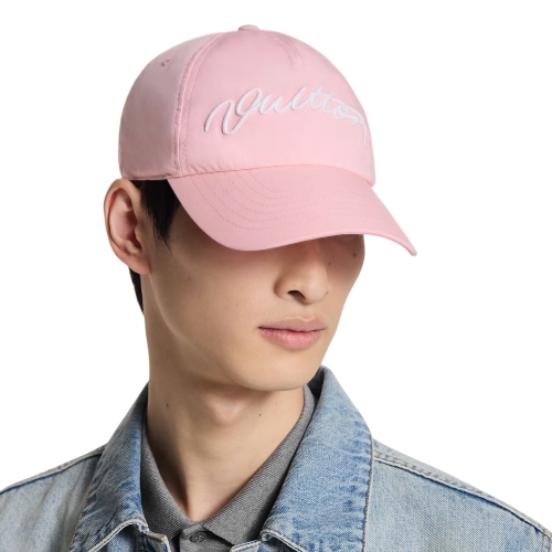 The signature cap infuses the athletically inspired essential with the House's heritage of savoir faire and Pharrell Williams' utterly contemporary, inimitable style. A handwritten VUITTON, embroidered in contrasting white, adds an elegant pop, with a "Marque Louis Vuitton Déposée" signature woven on the back above the adjustable back strap.