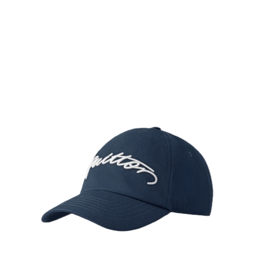The signature cap infuses the athletically inspired essential with the House's heritage of savoir faire and Pharrell Williams' utterly contemporary, inimitable style. A handwritten VUITTON, embroidered in contrasting white, adds an elegant pop, with a "Marque Louis Vuitton Déposée" signature woven on the back above the adjustable back strap.