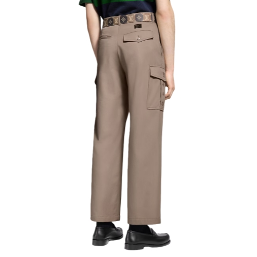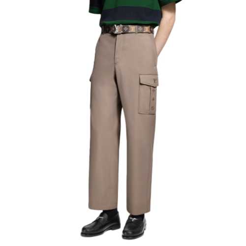 A fine cotton-silk blend elevates these casual workwear pants in elegant pale beige tones. They are distinguished with discreet embroidered signatures on each of the cargo pockets and a Louis Vuitton Malletier patch above the rear right pocket. With their versatile transeasonal style, these pants bring a refined accent to everyday looks.