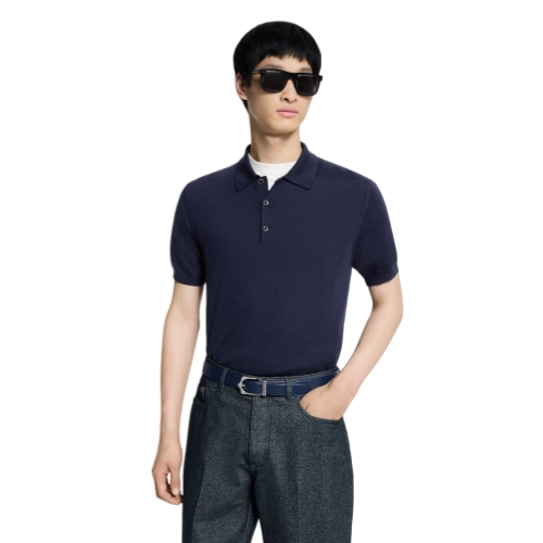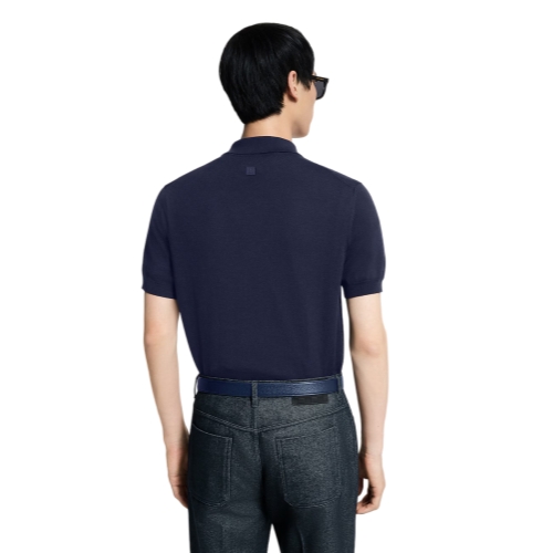 Crafted in a refined wool-silk knit, this short-sleeved polo shirt adds a preppy twist to an office ensemble. Subtle embroidery signs the bottom left, while a leather signature patch adorns the back. This chic navy blue iteration of a timeless style is easy to mix and match. It can lend a contemporary twist to tailoring, or elevate smart chinos on less formal days.