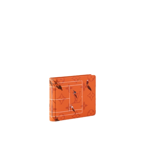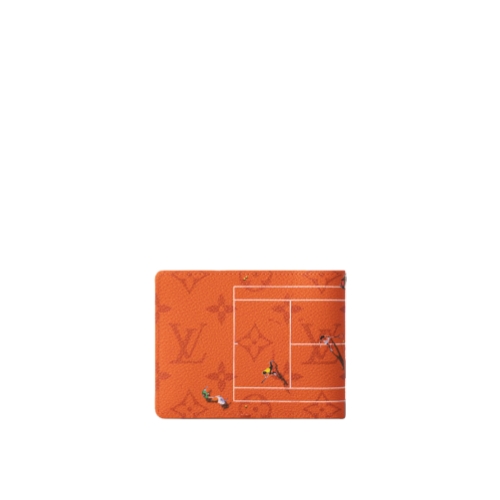 This Slender Wallet is made from colored Monogram canvas and features a playful print of a miniature sports scene. The subtle Monogram pattern almost disappears in the color of the background, elevating the photorealistic image on top.