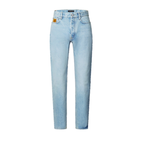 These slim jeans, crafted from premium Japanese denim, are a wardrobe essential enhanced with the Louis Vuitton savoir-faire. With their timeless light blue wash and their easy silhouette, they can be effortlessly styled with any look. Exclusive details include tobacco-toned topstitching, an embroidered LV signature on a rear pocket and signed nubuck patches on the ticket pocket and waist.