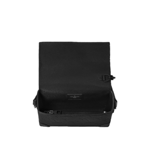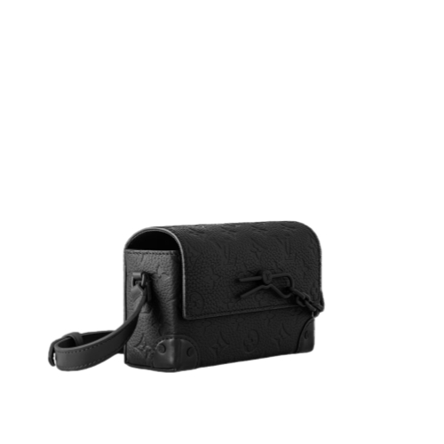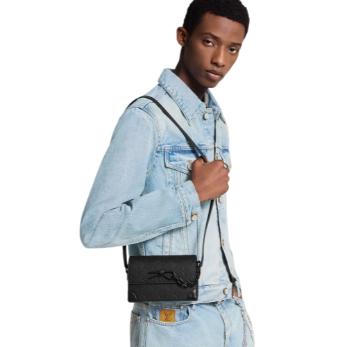 The Steamer Wearable Wallet is made from Taurillon leather embossed with the Monogram pattern and finished with black hardware, including the signature chain-and-pin detail. The inside zipped pocket keeps belongings secure. It can be worn comfortably on the shoulder thanks to its adjustable strap.