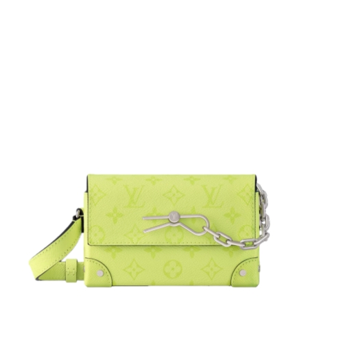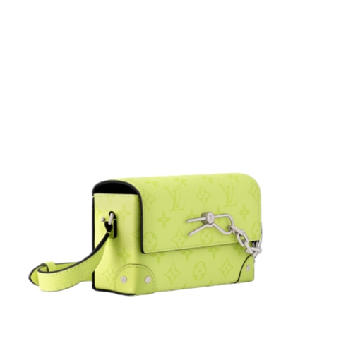 Inspired by the House’s iconic Steamer trunks, the Steamer Wearable Wallet in bright Monogram coated canvas and Taiga cowhide leather is instantly recognizable by its chain-and-pin closure. Perfectly sized for carrying essentials, it features an inside zipped pocket. The adjustable strap ensures comfortable shoulder or cross-body carry.