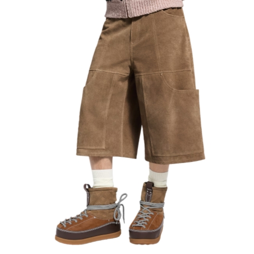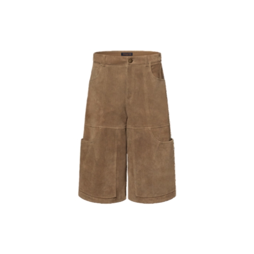 These workwear shorts from the Fall-Winter 2025 collection are crafted from velvety brown suede. Denim-style details include roomy cargo pockets, topstitching and gold-toned metal rivets, while a nubuck Mini Damier jacqueron signs the back. With a fluid loose fit, these shorts are both casual and luxurious, bringing a sophisticated accent to everyday looks.