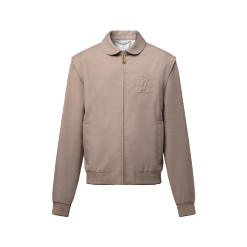 This light, zippered bomber in beige colored wool is tailored with elegance and comfort in mind for this collection’s cruise passenger. It has a dandy rounded collar, while an embossed LV Flower motif adds a chic signature to the chest. Sporty details include knitted gussets on the shoulders and a ribbed waist and cuffs, ensuring ease of movement.