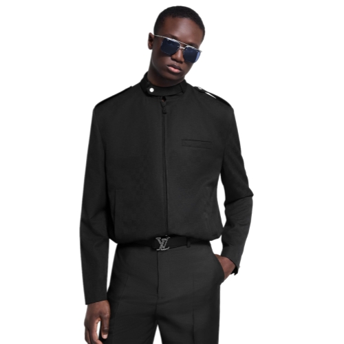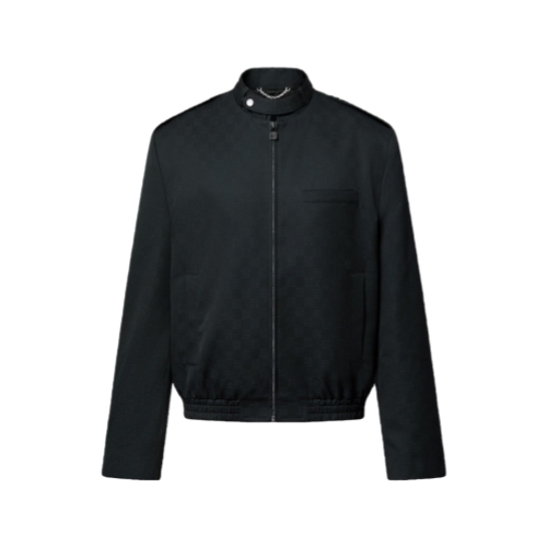 This black wool blouson takes a modern approach to tailoring, combining traditional details such as buttoned cuffs and piped pockets with contemporary accents such as a biker collar, zipper fastening and elasticated waist. The fine wool jacquard fabric is distinguished with a discreet lightly textured Damier Flower motif. This light jacket brings an elegant twist to everyday looks.