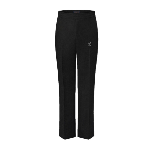 These elegant track pants reinterpret a sporty silhouette with refined tailoring. An elasticated waist enhances the fluid drop of the technical wool fabric while side pockets are discreetly hidden on the seams. A metal LV ornament signs the left leg of this versatile piece, which can be paired with a matching hoodie for a sophisticated modern look.