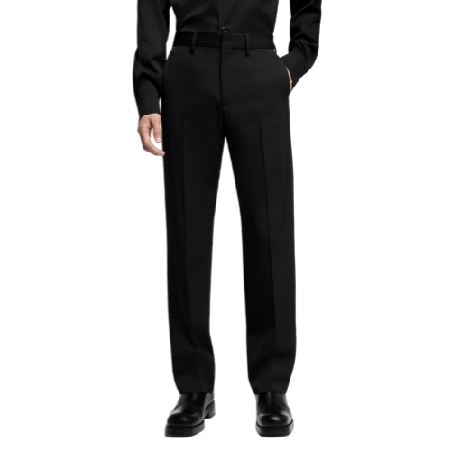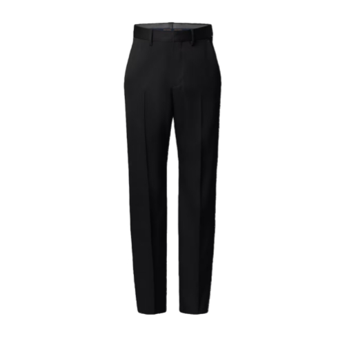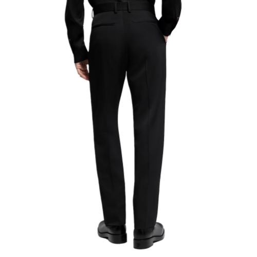 These chic black tailored cigarette pants are perfect for completing formal looks. Their flattering tapered silhouette brings crisp precision to an ensemble, while the matte black grain de poudre wool makes them easy to style with the Spring-Summer 2025 show’s subtle textures and multiplicity of black tones. A timeless and essential piece in the formal closet.