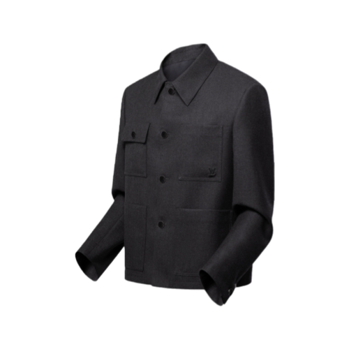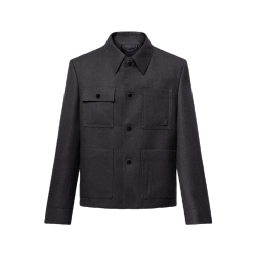 This dark gray jacket offers a contemporary take on traditional tailoring with its sleek and minimalist workwear-inspired silhouette adorned with a metal LV ornament on the right chest pocket and Monogram Flower rivets on the cuffs. Tailored from responsibly sourced wool, it features four patch pockets and has matching pants that make an effortlessly chic set.