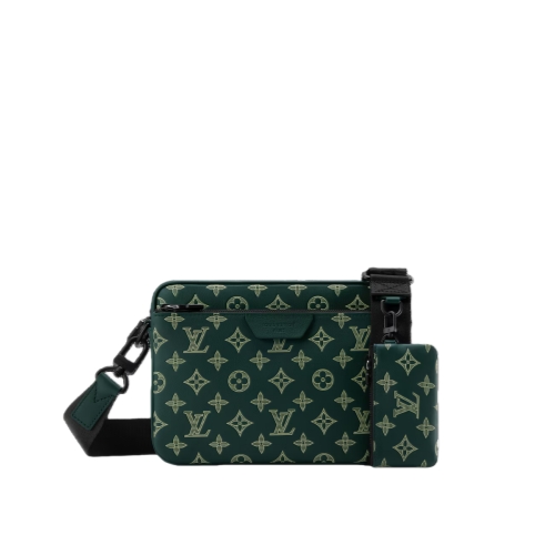 The Trio Messenger is crafted from soft Monogram Shadow calf leather and signed with with the Monogram Shadow leather tab. It features a main pouch, a detachable front zipped pocket, and a removable coin purse on the strap. The adjustable shoulder strap ensures a comfortable, customizable carry.