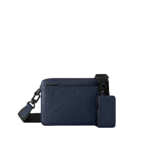 This Trio Messenger bag is fashioned from Monogram Shadow embossed calf leather in a sporty colorway. The embossed Monogram pattern brings style while the suppleness of the calfskin makes the bag unusually body friendly. The Trio is composed of a main pouch, a removable front zipped pocket, and a small detachable coin purse on the strap.