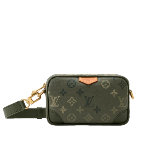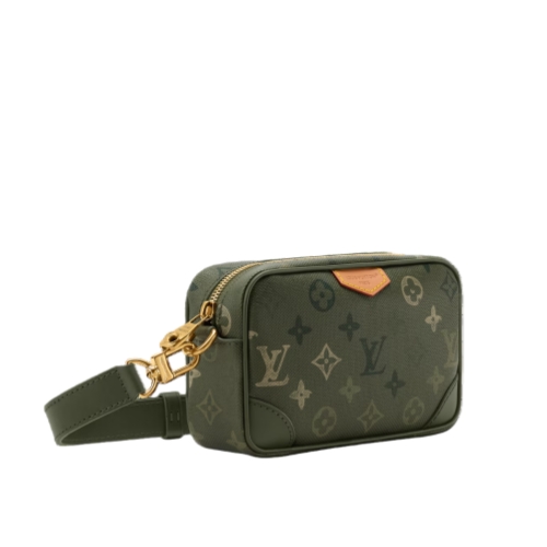 The Trocadéro Wearable Wallet is made from Monogram Surplus coated canvas with khaki green leather trim. Pharrell Williams gives the classic Monogram a camouflage twist, with Monogram Flowers and LVs in varied green tones. Lined in matching cotton, it features a removable, adjustable strap for versatile carry.
