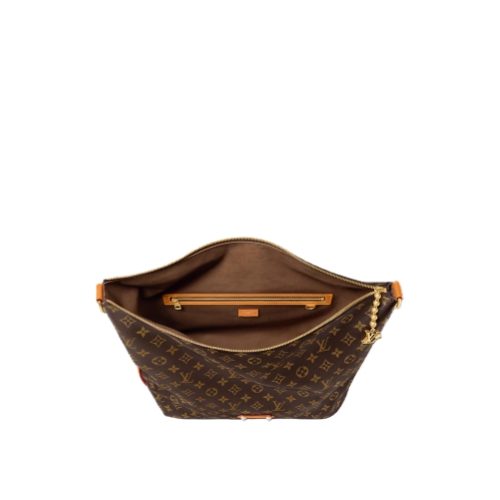 The Vagabond Hobo is all about the distinctive crescent shape combined with the suppleness of Monogram canvas. The result is a bag as comfortable as it is recognizable. The aged-leather trim and gold-toned hardware, including the LV charm attached to the bag with a gold-toned ball chain, bring a vintage feel to the contemporary design.