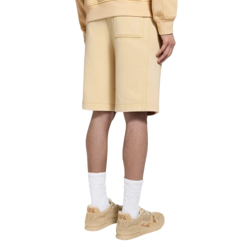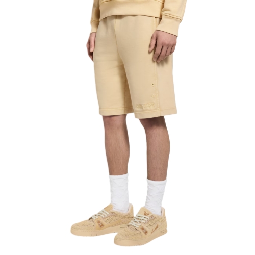 Inspired by effortless summer days, these pale yellow cotton shorts are perfect for lounging after a dip in the ocean. They are garment-dyed for a washed vintage look and embellished with tone-on-tone embroidered signatures and eyelets. Soft ribbing on the sides of the legs further distinguishes this piece. A matching hoodie makes a sunny set.