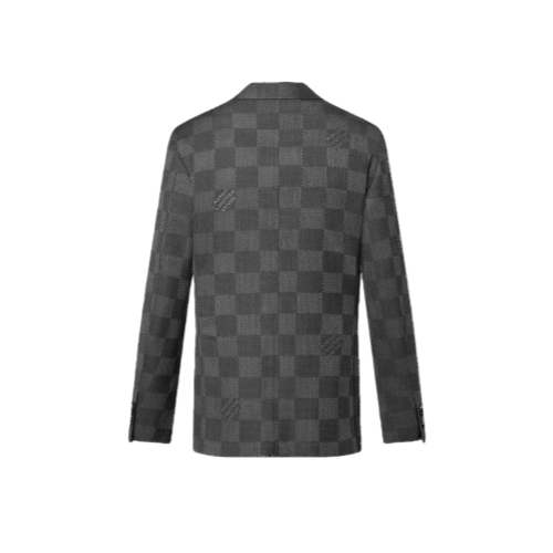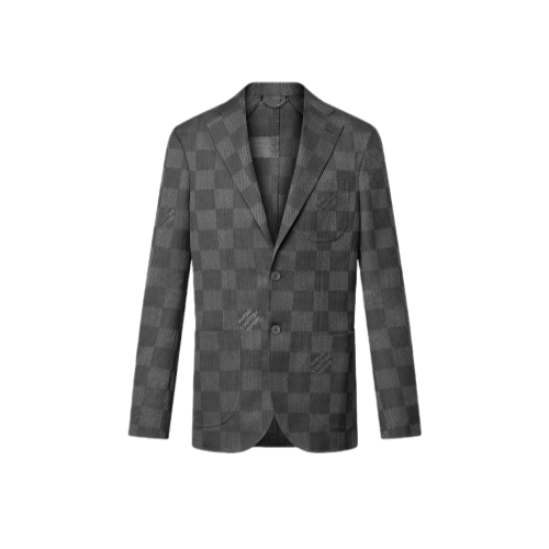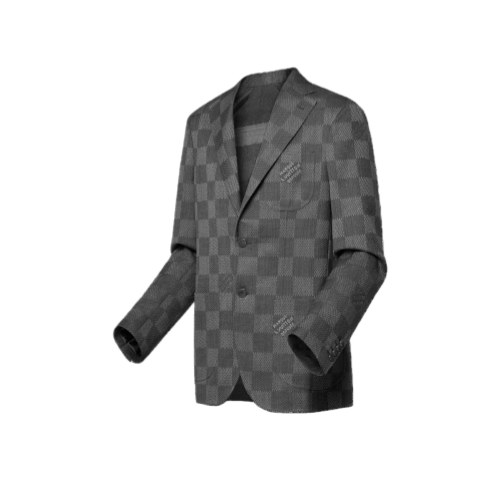 This softly structured wool Napolitana jacket is tailored from pure wool with a Big Damier jacquard in refined gray tones. Marque L.Vuitton Déposée signatures are incorporated into the motif, which is scaled up for a graphic effect. This unlined piece can be worn with matching drawstring pants to make an effortlessly elegant suit.