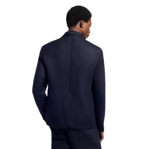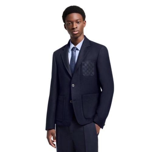 This preppy navy blue blazer is half-lined for a softly-structed silhouette that can be dressed up or down with formal pants or jeans. Contemporary accents include a Damier-embossed leather pocket on the chest and Monogram Flower embroidery on the two patch pockets, while the luxurious wool-silk blend double-face fabric reveals a contrasting burgundy interior.