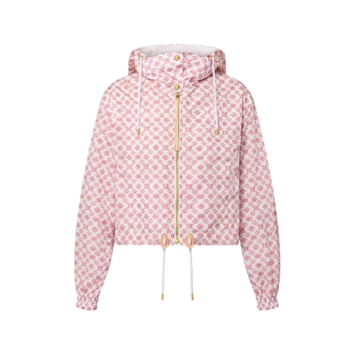 This parka is refreshed for the season with a vibrant allover Monogram motif in a graphic 3D-effect print. It is cut from lightweight nylon in a boxy cropped shape with an ample hood, elasticated cuffs and a drawstring waistline for a classic sporty look, while a leather fringe pull adds a contemporary flourish to the front zipper.