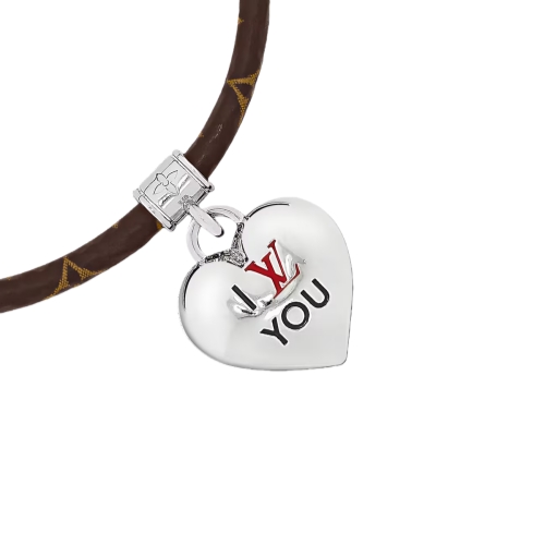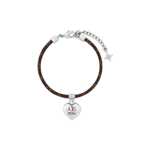 The exclusive I LV NY bracelet combines exquisite craftsmanship with a heartfelt expression of love. Suspended from a slim Monogram leather cord, a palladium-colored metal heart bears the inscription “I LV YOU” for a touch of endearing charm. This versatile, eye-catching bracelet captures the essence of Louis Vuitton with elegance and originality.