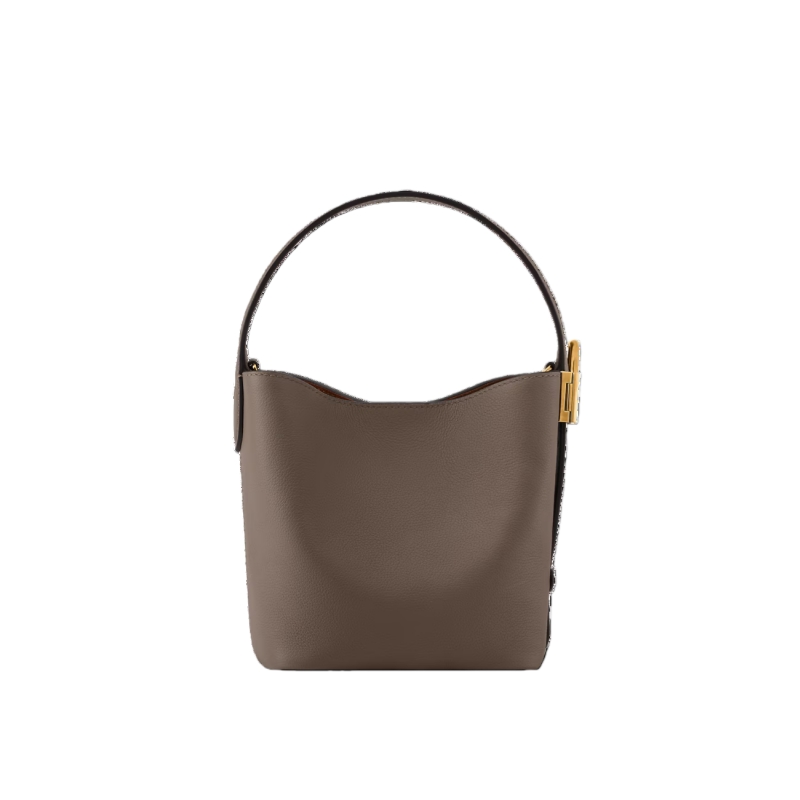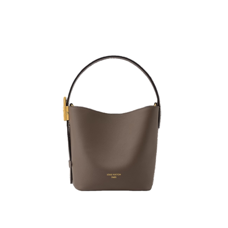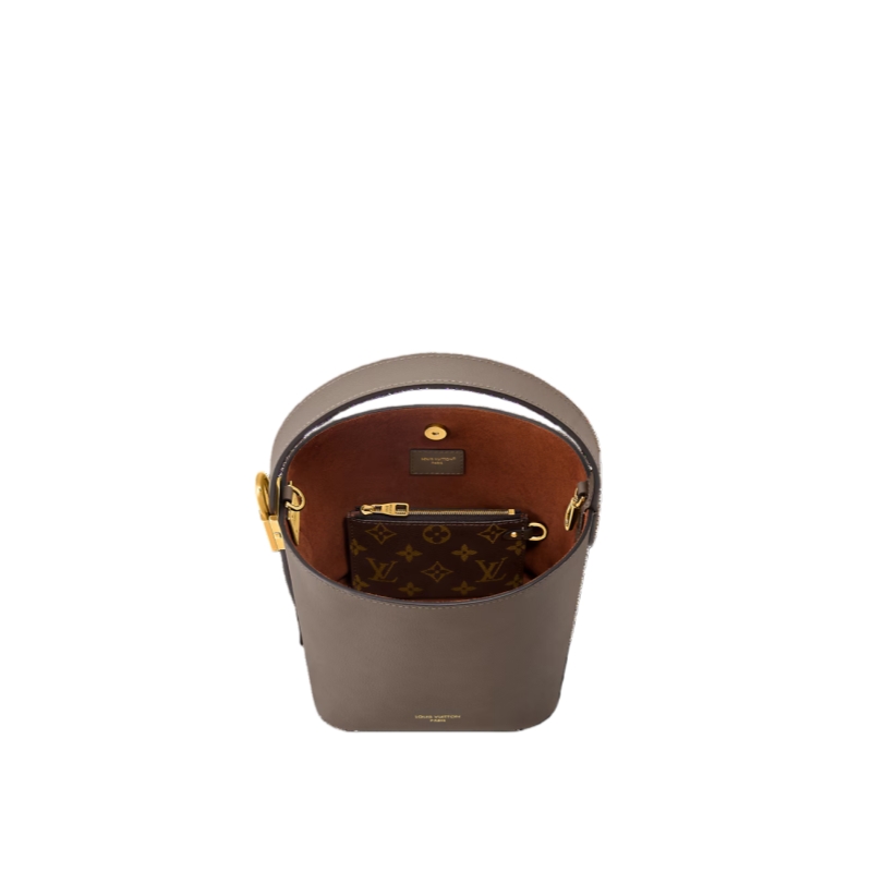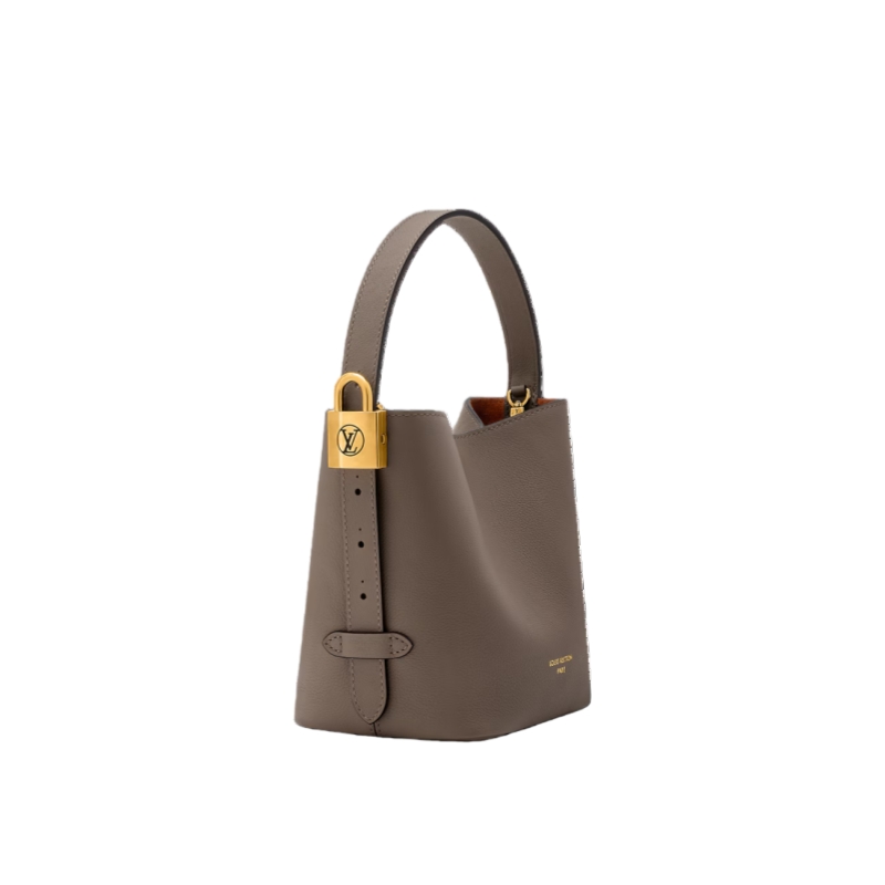 The Low Key collection introduces an iconic style to its lineup with this bucket-shaped All In BB. It is crafted from grained calfskin adorned with a signature gold-toned padlock, as well as a decorative name tag and removable Monogram pouch that slots neatly inside. Designed to be worn casually as an open bucket bag, the versatile model can also be folded flat to create a pyramidal profile.