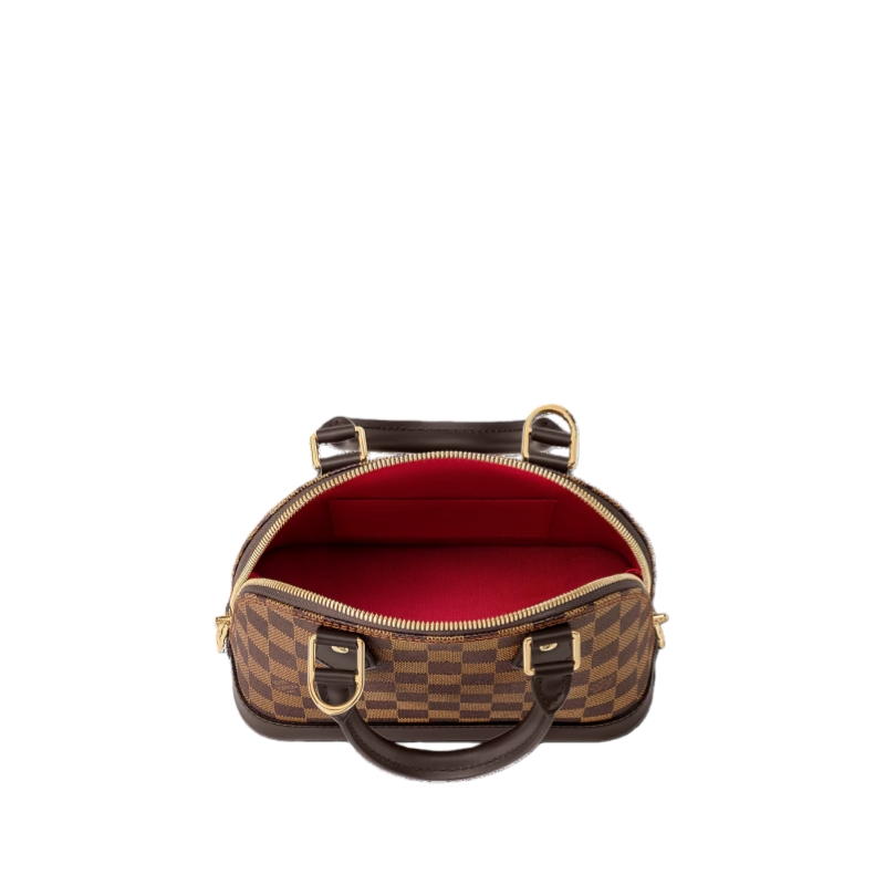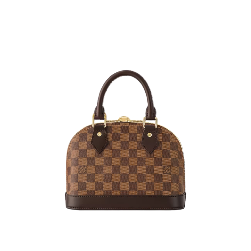 The Alma BB handbag traces its pedigree to the Art Deco original, introduced in 1934. Signature details impart a timeless elegance to this model made from graphic Damier Ebene canvas: note the golden padlock and keys, twin Toron handles and chic leather key bell. Equipped with a removable and adjustable strap, this charming small bag is perfect for cross-body wear.