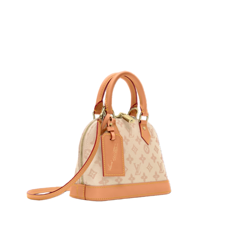 Celebrating 130 years of the Louis Vuitton Monogram, this Alma BB presents a vintage-inspired update on the iconic signature. It is made from Monogram Origine canvas, which recalls heritage designs from the archive, and is offered in a timeless Monogram Origine Lin palette. Trimmed with smooth cowhide, it is lined with striped fabric and features a signature padlock and an exclusive anniversary address tag.
