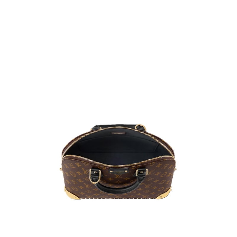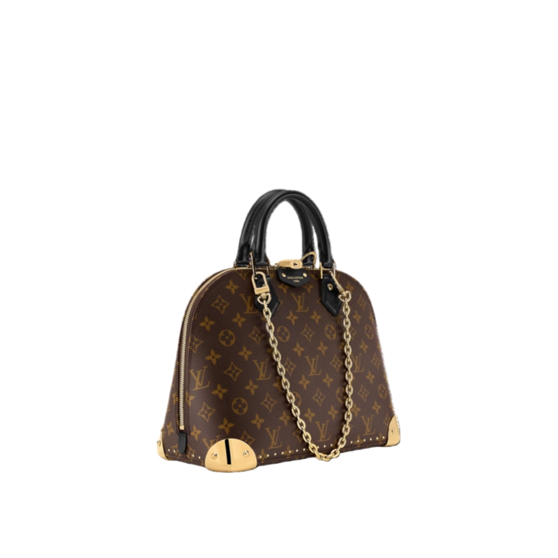 The Trunk family welcomes this contemporary edition of the Alma PM, paying tribute to the House’s travel heritage with elevated hardware. Made from Monogram canvas, it is trimmed with calfskin and has gold-toned corners and a signature padlock that is framed by a leather plastron. The versatile design can be carried by hand or styled with the chain attached.