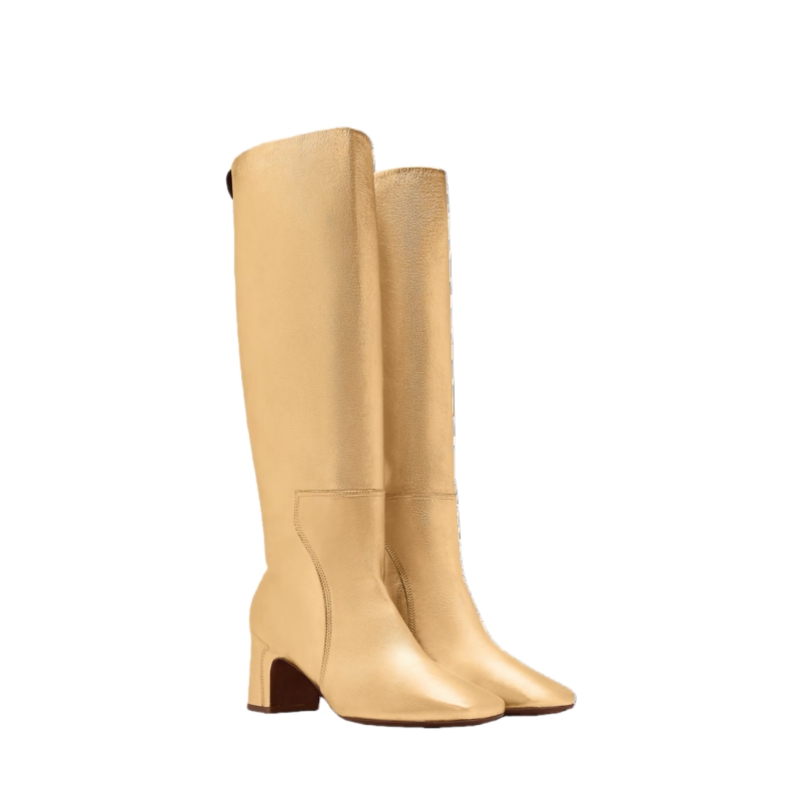 Striking in metallic calf leather, the Avalon high boot was inspired by Arthurian legend and designed for striding out. It is characterized by its square toe, block heel and tubular shape, which allows it to be pulled on with ease. It is signed at the back with a strap and loop in Monogram canvas.