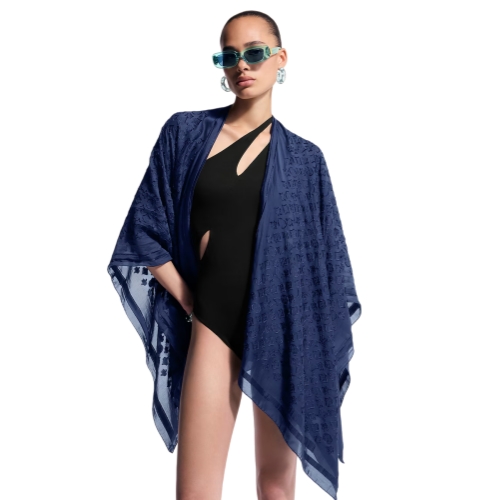 The Beach Pare All Sunset pareo offers plush, elegant protection from the summer sun. Crafted in a soft, fluid silk-cotton blend adorned with a refined variation of the Monogram motif, it features a sumptuous signature accent: a leather triangle emblazoned with the LV Initials. Versatile, with multiple styling options, it is the ideal companion for a summertime getaway.