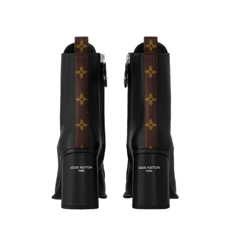 The Berlin open-toe ankle boot is a striking design in smooth calf leather. As well as its sensual open toe, it is distinguished by its full-length laces, which go all the way up the front, ending with hiking boot-style hooks. This model is finished with a high block heel and a back loop in Monogram canvas.