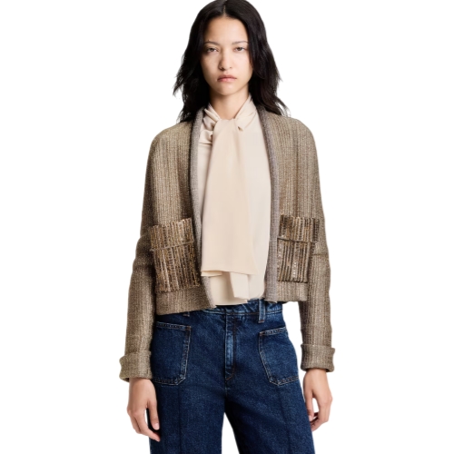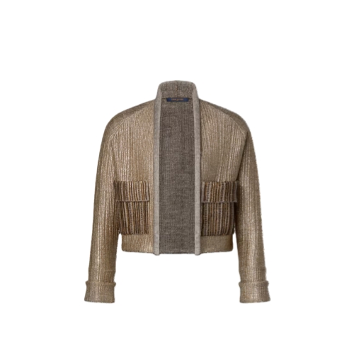 Drawing on defiant, decorative styles of medieval armor, this boxy cardigan from the runway collection is spun from a glittering metallic wool-blend knit. The front is embellished with two structured flap pockets highlighted with shimmering sequins for added texture, while the open front is finished with a rolled hem for an elevated look.