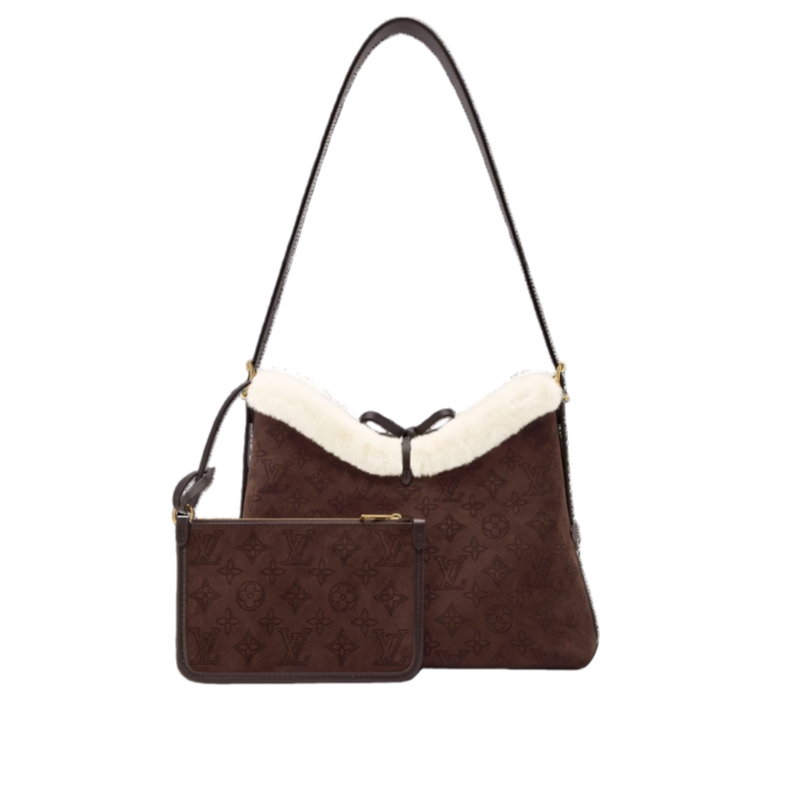 Crafted from soft and velvety suede in a rich Chocolate hue, this LV Ski CarryAll PM belongs to the Cozygram collection. A trendy and collector-worthy bag, it is trimmed with contrasting shearling and adorned with gold-toned hardware for a sophisticated finish. Inside, it is fitted with multiple pockets to store essentials, and also includes a signature name tag that can be removed if desired.