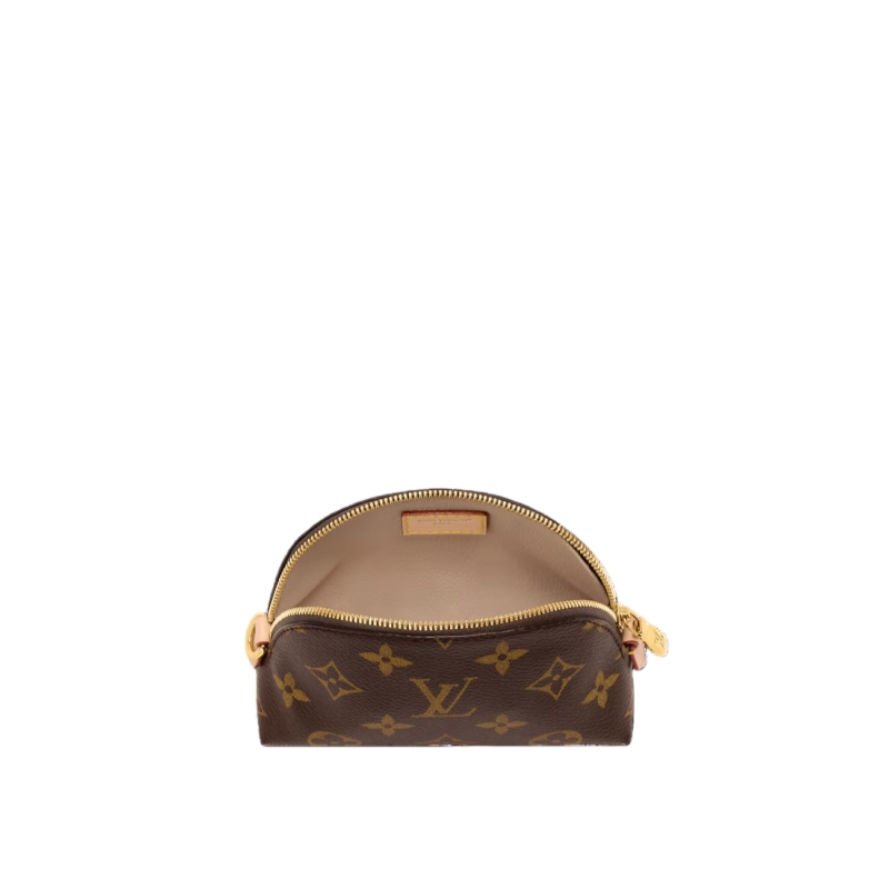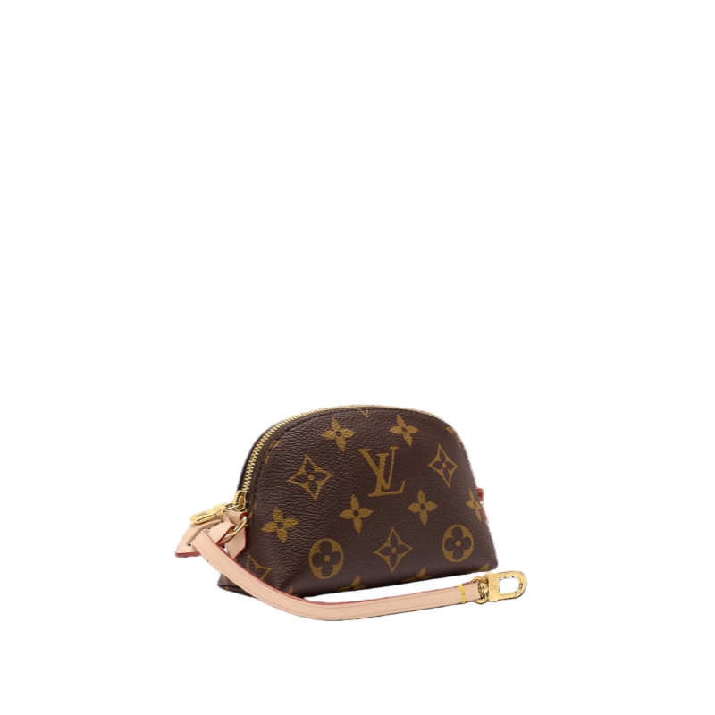 Inspired by the Cosmetic family, this small purse is designed as an accessory to stow inside a bag, or attached as a useful charm. Showcasing the House’s iconic Monogram pattern, it is crafted from canvas and trimmed with contrasting leather. Made with a protective lining, it is perfect for storing petite essentials, like earphones, keys and a favorite lipstick. It is finished with gold-toned hardware, including a key hook.