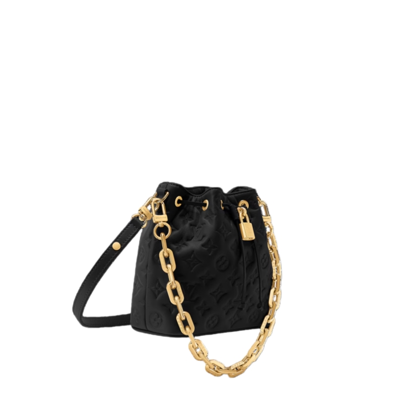 Introducing the latest edition to the Coussin family, the Bucket handbag offered in sophisticated Monogram-embossed lambskin. A feminine day-to-evening option, it is adorned with gold-toned hardware, including a signature LV padlock and a removable Coussin chain. The drawstring closure is both functional and stylish, and complements the bag’s multiple carry options.