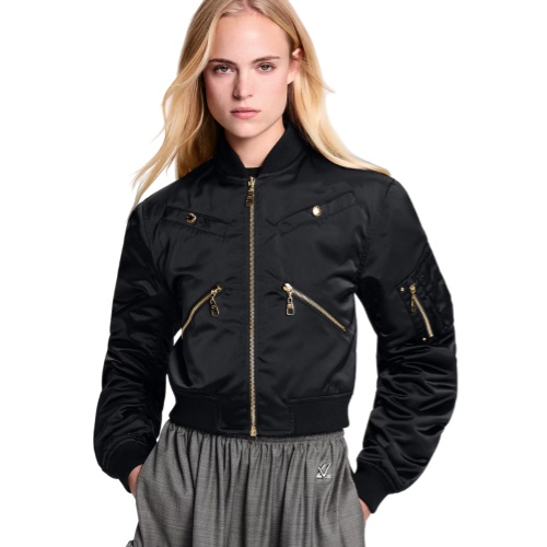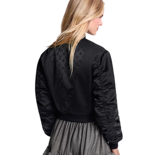 This bomber jacket is revisited in a chic cropped shape with ruching along the sleeves for added texture and volume, while multiple fastened pockets introduce a utility feel. It is made from lustrous nylon satin with ribbed hems for a classic sporty look, complete with a subtle tone-on-tone Monogram insert on the back.
