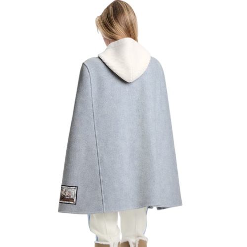 This cape exudes après-ski elegance in a cozy double-face wool-silk blend in a subtle denim effect. It is cut in an understated mid-length shape with slits at the sides for comfortable wear. A contrasting ribbed hood and double-zipper fastening underscore the sporty spirit, while a seasonal Louis Vuitton mountain patch and a Monogram jacquard sign the look.