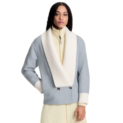 This jacket is cozy and contemporary in a double-face wool-silk blend in a trompe l’oeil denim effect. The oversized silhouette is emphasized with the exaggerated shawl collar and cuffs in contrasting ribbing, and the front is fastened with two buttons. The inside is finished with a Monogram motif, while a Louis Vuitton mountain patch signs the back.