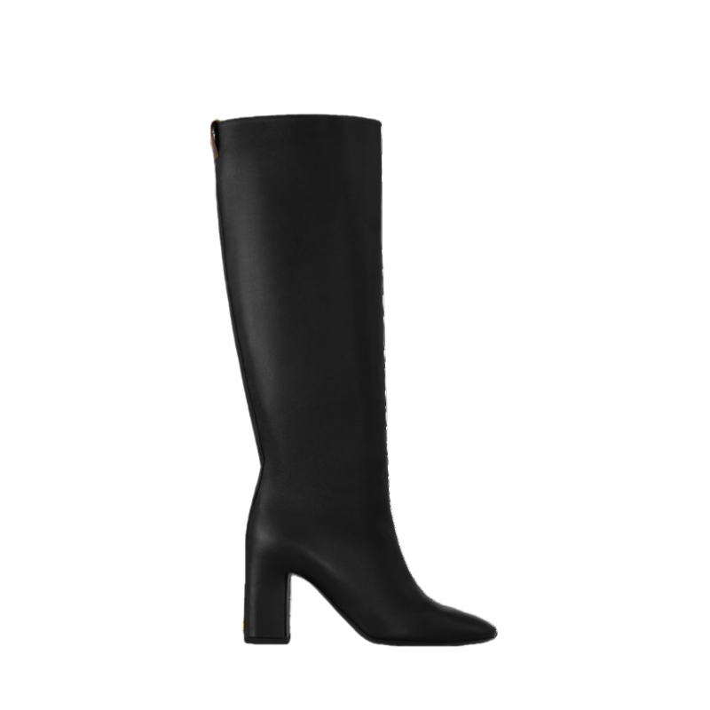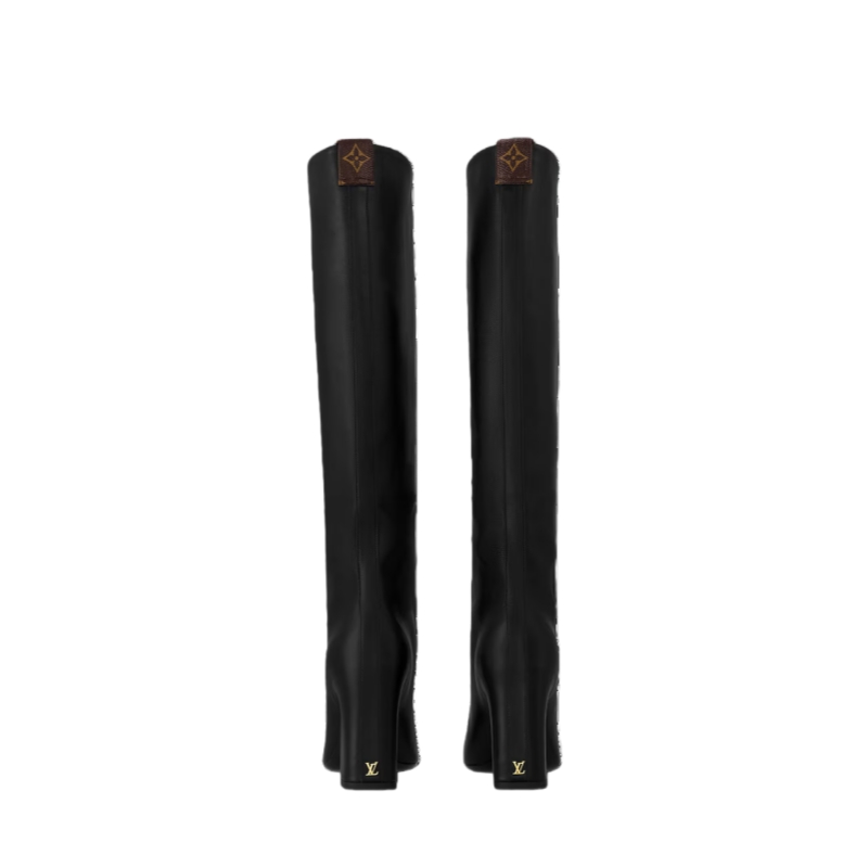 The Donna high boot is a Seventies-inspired tubular style in supple calf leather, which was first seen at Louis Vuitton's Fall-Winter 2022 fashion show. Its sleek lines are further enhanced by its leather-covered block heel, which creates a harmonious look. A back loop in patent Monogram canvas discreetly signs this model.