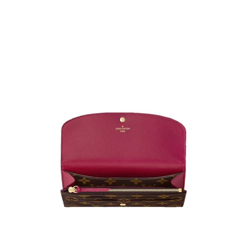 Proving that functionality and beautiful design can go together, the Emilie Wallet is elegance itself in supple Monogram canvas with a fresh lining color. Numerous pockets and an attractive shape make it irresistible.