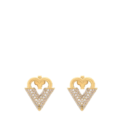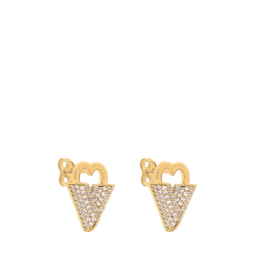Inspired by the magic of love and affection, the Essential Love earrings combine eye-catching elegance with a subtle Louis Vuitton signature. Their striking design features a heart crafted in gold-toned metal, integrating the House’s distinctive V emblem enlivened with dazzling rhinestones. Easy to wear, these sophisticated earrings add a touch of romantic charm to any look.