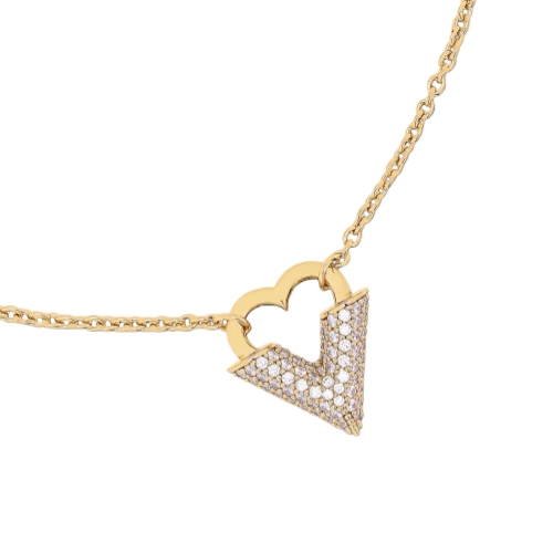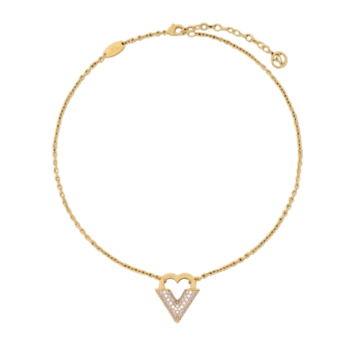 The dazzling design of the Essential Love necklace is a sophisticated celebration of love and romance. Suspended on a fine-linked gold-colored chain, its centerpiece is a precious heart integrating the House’s iconic V signature, studded with sparkling rhinestones. A finely crafted, elegant necklace, and an enchanting token of affection.
