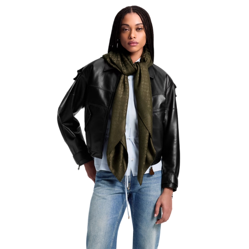 The Evermore shawl is cut in a smaller style to make it easier to tie. It features the classic Monogram pattern made using a woven jacquard technique and is finished with hand-rolled edges. The shawl is available in three colorways that are emblematic of the House.
