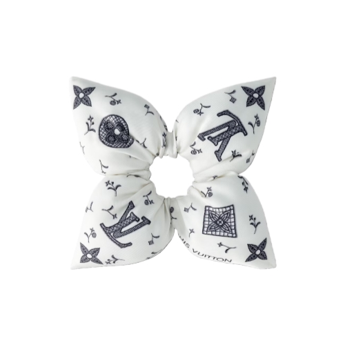 The enchanting design of the Fleur Pique scrunchy echoes the shape of the iconic pointed Monogram Flower. Crafted in sumptuous silk with a puffy effect, it features a feminine floral version of the Monogram pattern, plus a classic Monogram on the back for an eye-catching contrast. Ideal for adding a touch of edgy elegance to any hairstyle.
