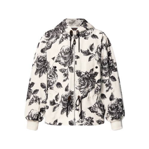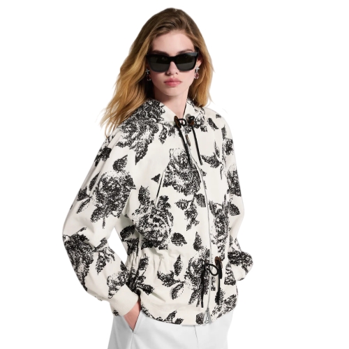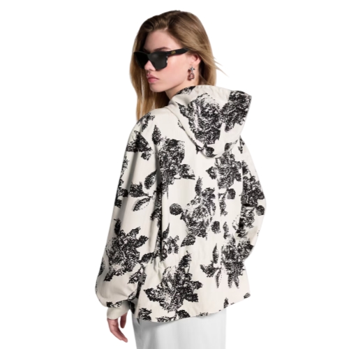 This season’s graphic Pop Art-inspired floral print elevates this classic parka with a chic spirit. It is cut from a lightweight cotton blend in a comfortable fit with cozy ribbed cuffs and drawstrings at the waist for a defined silhouette. A hood and a double-ended zipper fastening complete the practical, sporty style.