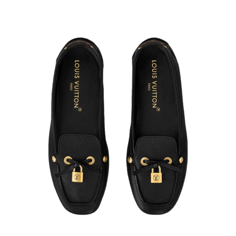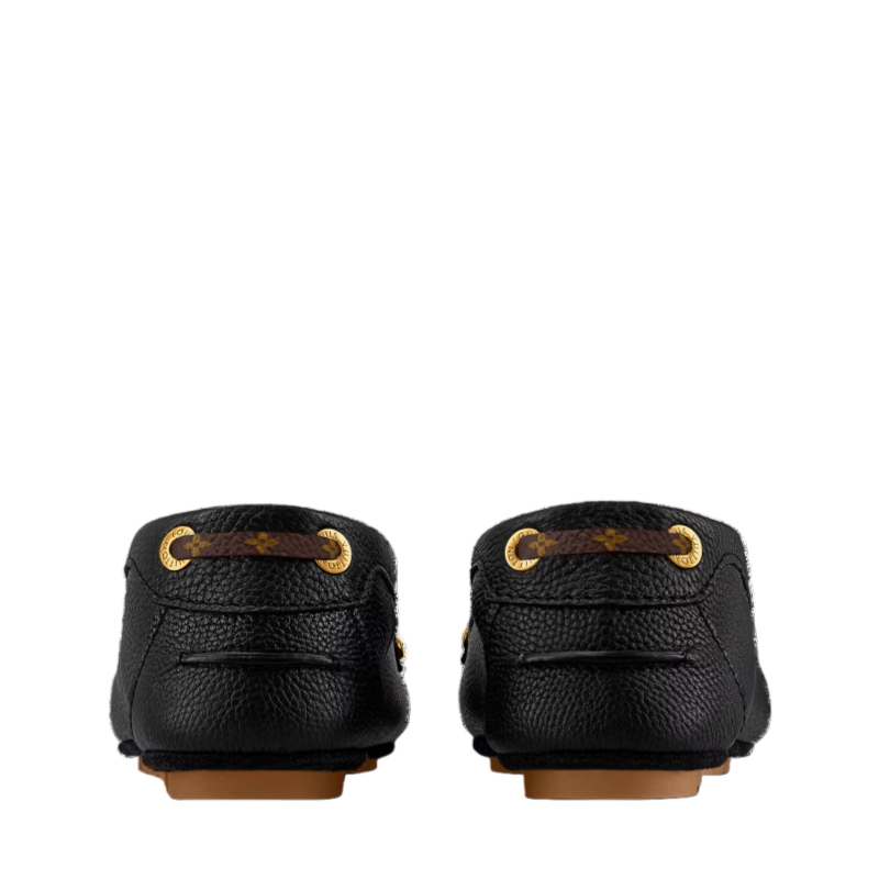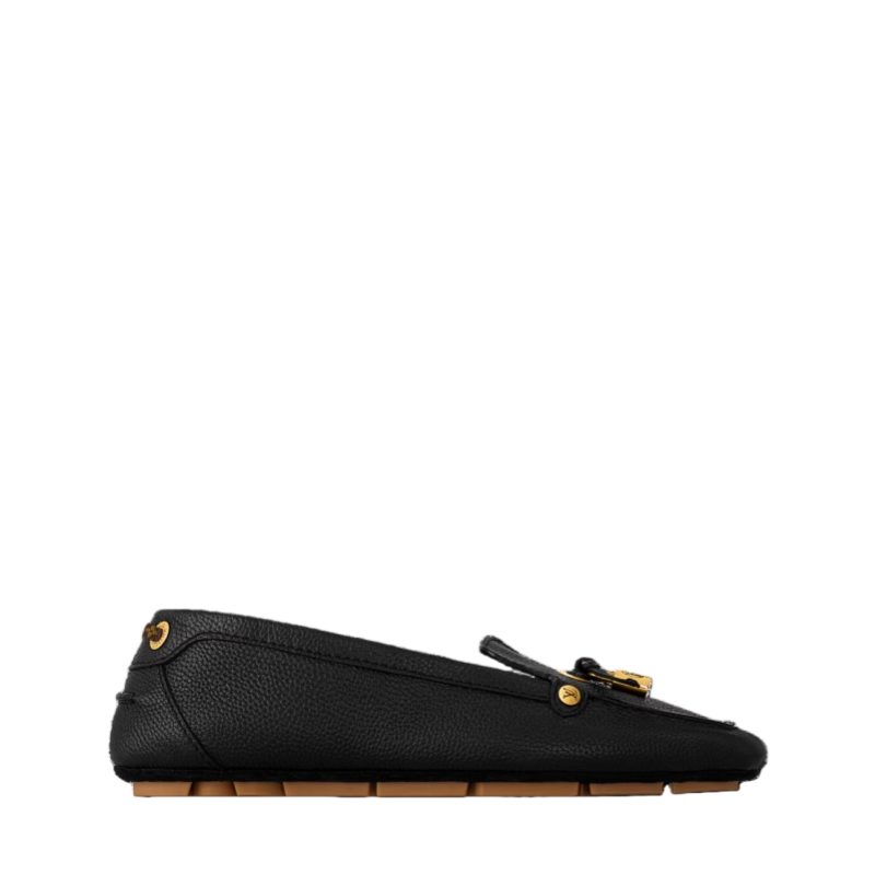 The Flore car shoe is a casual-chic style in grained calfskin. The supple leather complements the comfortable, lightweight design of this model, which features a flexible rubber-pad outsole. The upper is embellished with refined details, including a signature padlock accessory, engraved studs and eyelets, and a lace in Monogram canvas.